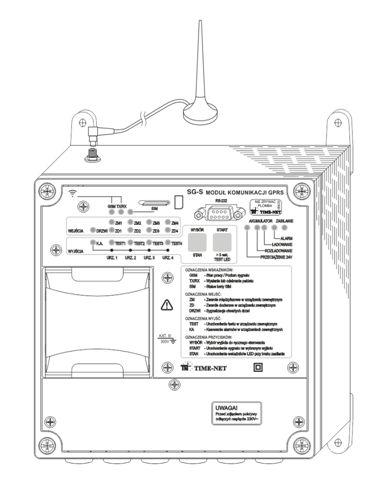 SG-S zastępuje układy telemechaniki w zakresie potrzebnym do zdalnego przekazywania informacji o alarmach generowanych maksymalnie z czterech sygnalizatorów typu SMZ oraz w zakresie potrzebnym do zdalnego kasowania alarmów i wykonywania funkcji „TEST” sprawdzającej ich sprawność.