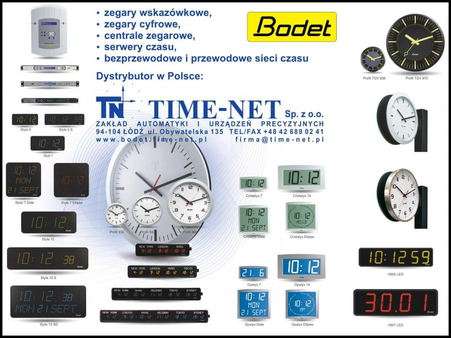 – cyfrowe i analogowe zegary wtórne (do współpracy z zegarem matką)