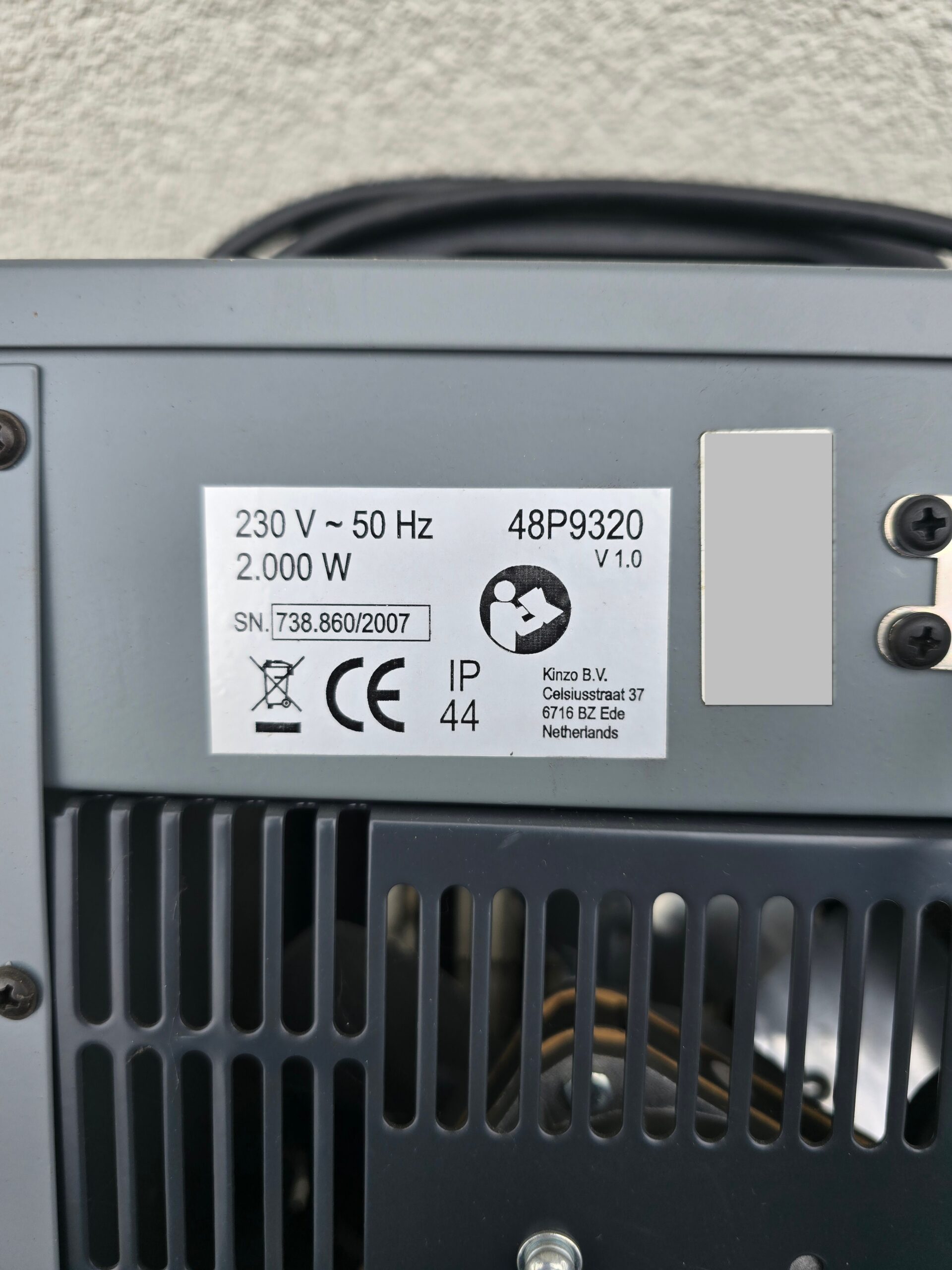 Wydajna nagrzewnica elektryczna holenderskiej firmy KINZO. Moc maksymalna 2 kW. Dwa stopnie grzania. Wbudowany termostat do regulacji temperatury. | ||