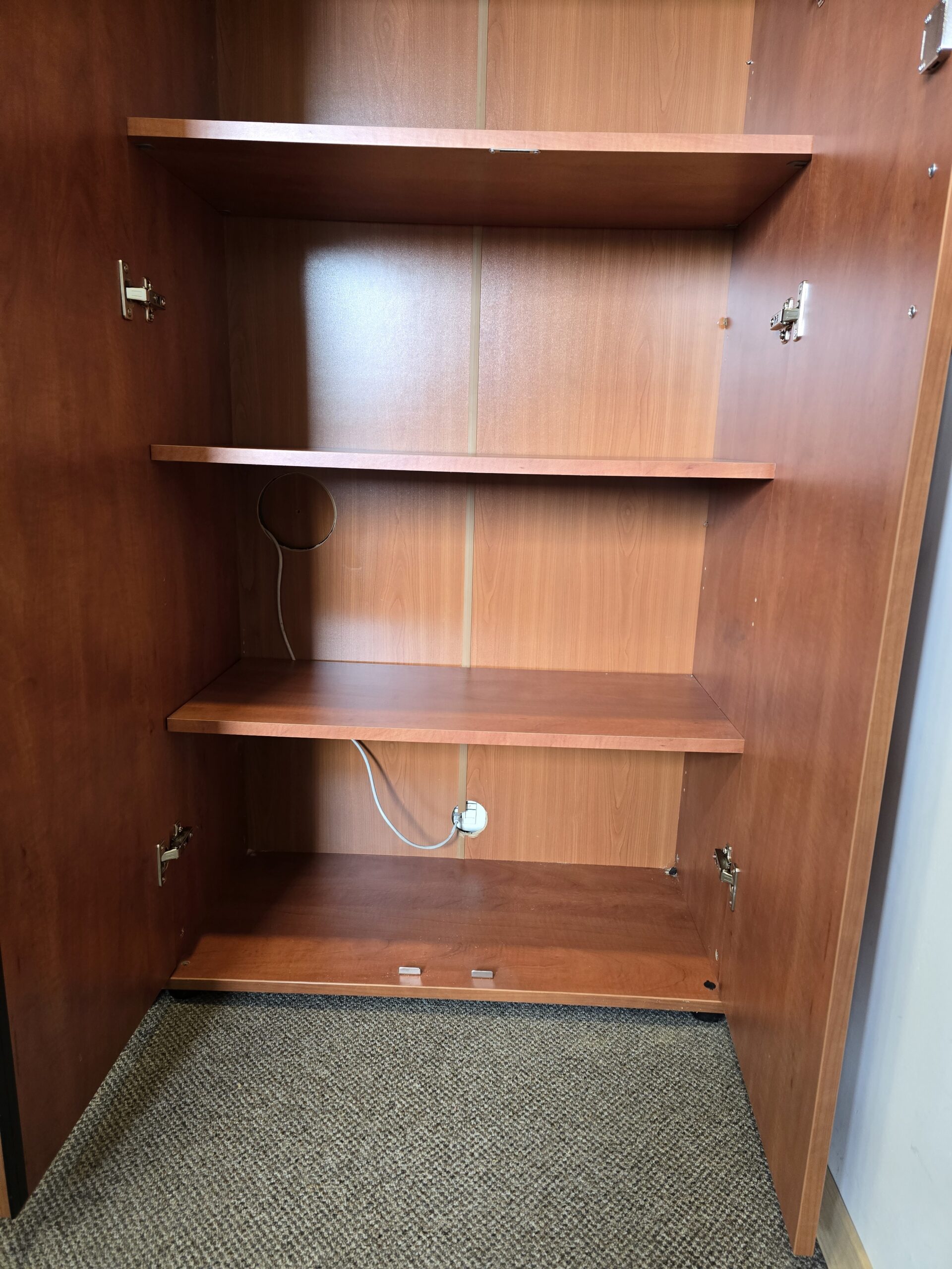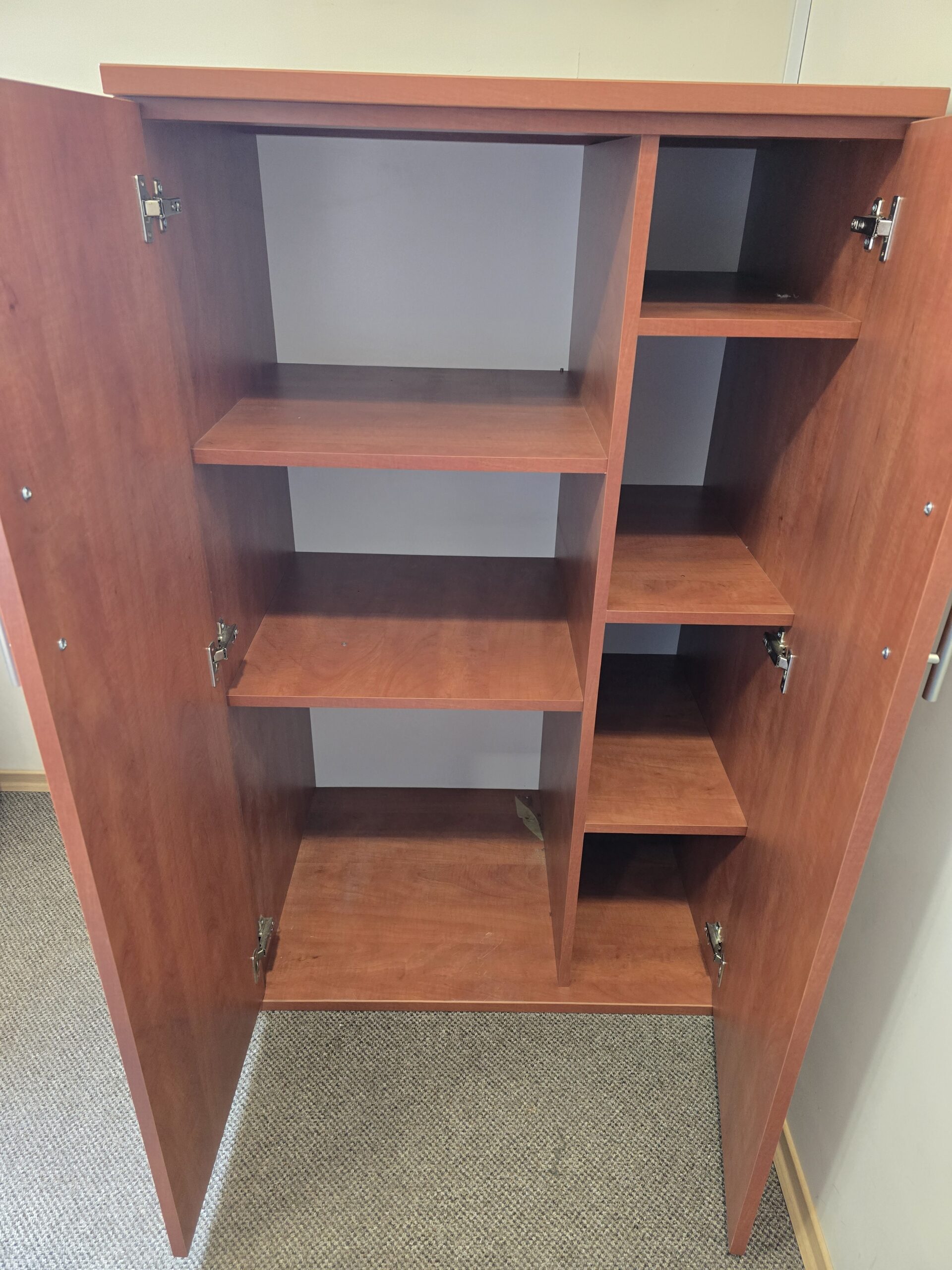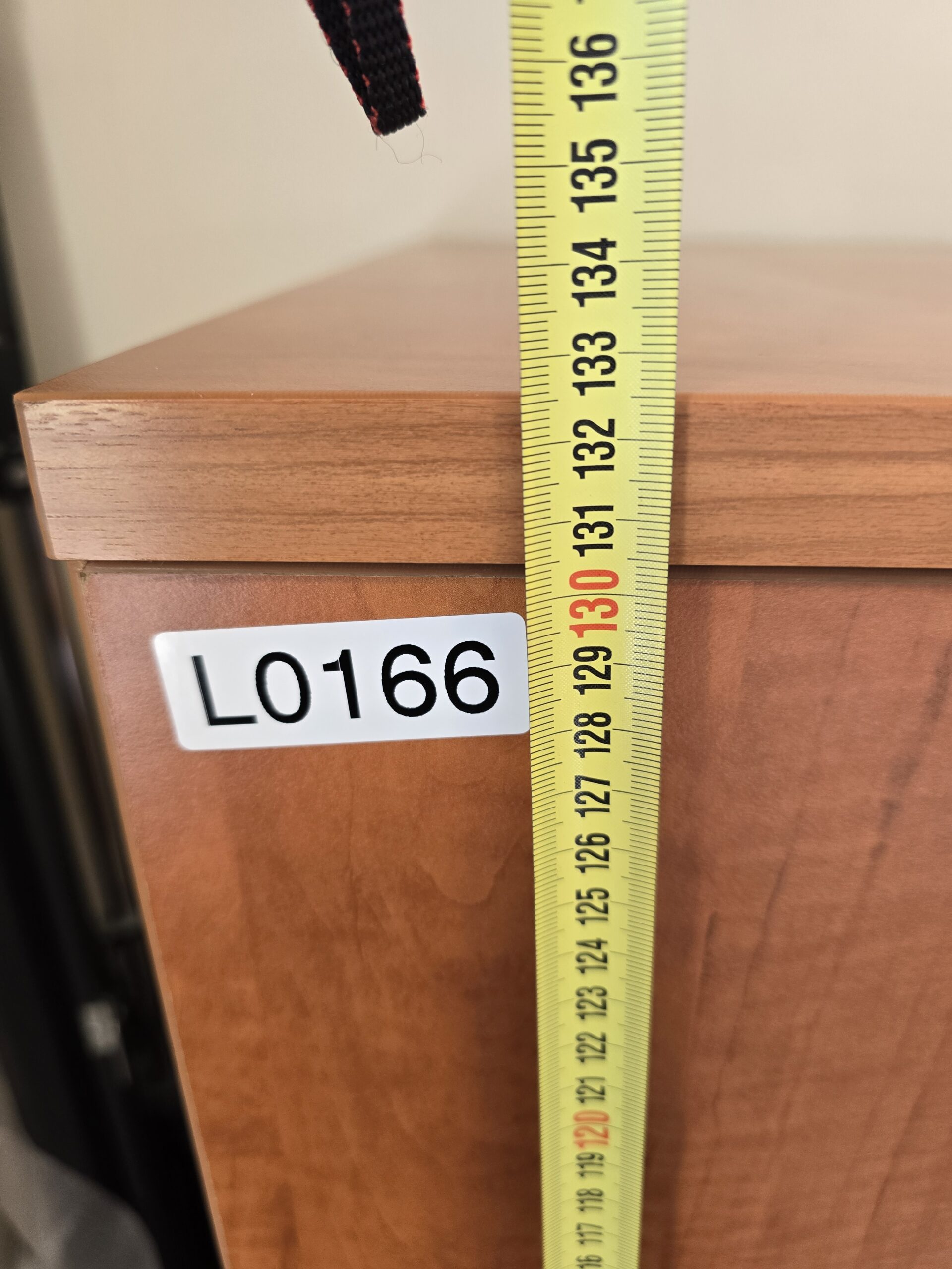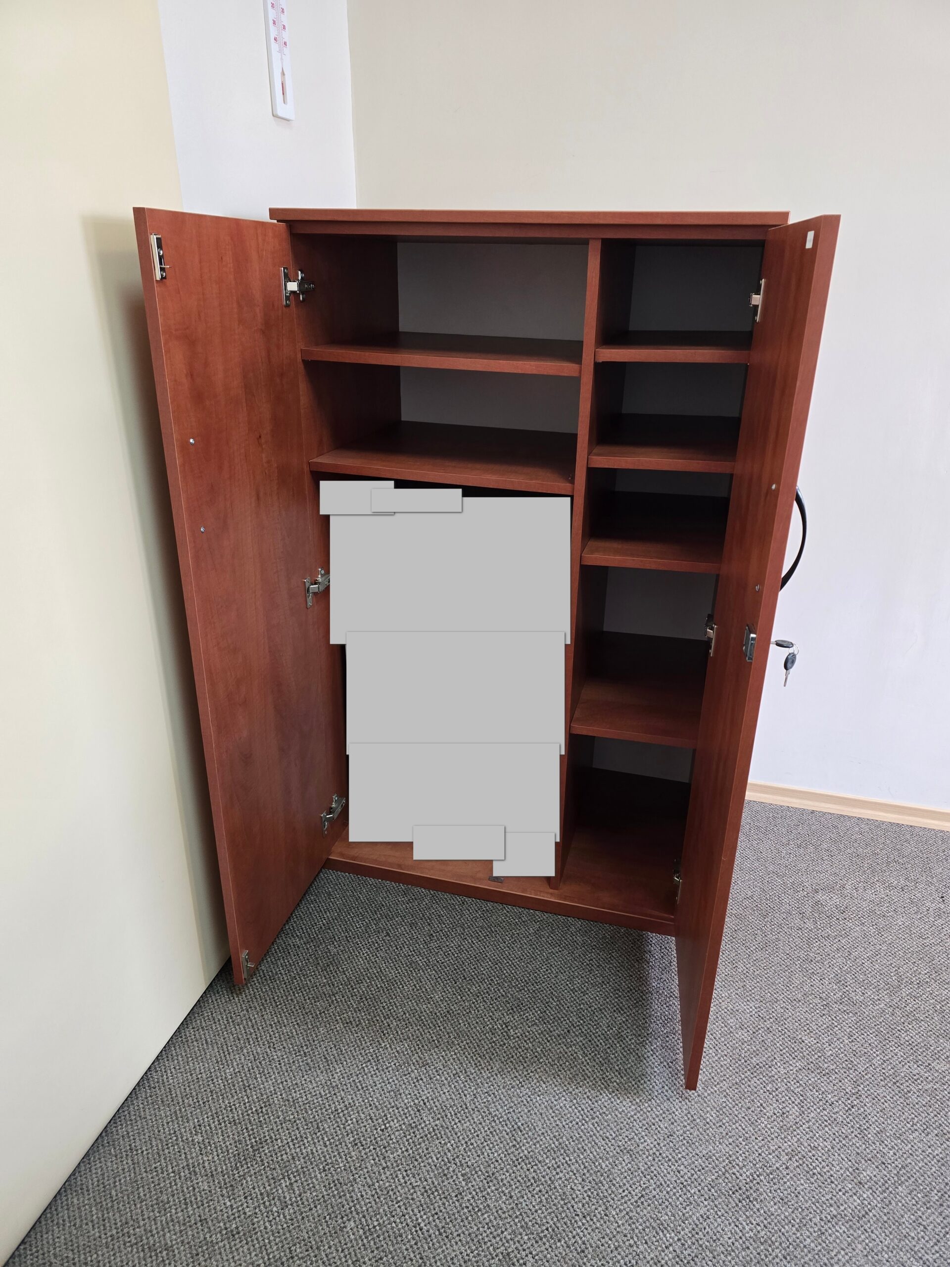 Szafka biurowa o wymiarach 80 x 132 x 53 cm (SxWxG), z zamkiem. Wewnątrz półki w dwóch niesymetrycznych kolumnach, z mozliwością regulacji wysokości. Przedmioty widoczne wewnątrz szafki nie należą do oferty. | ||