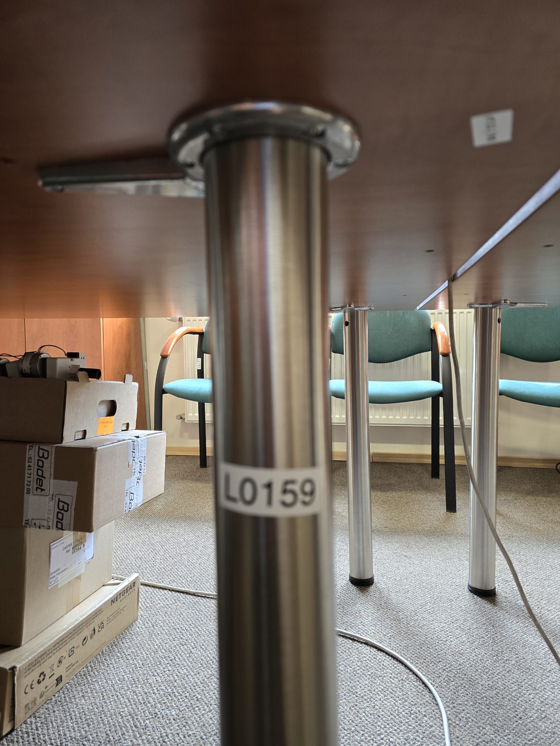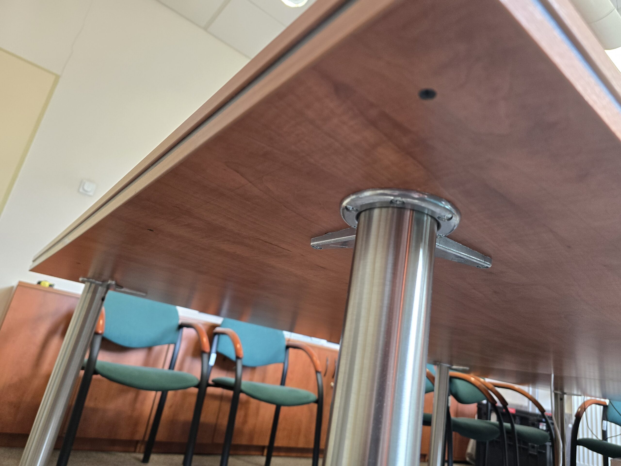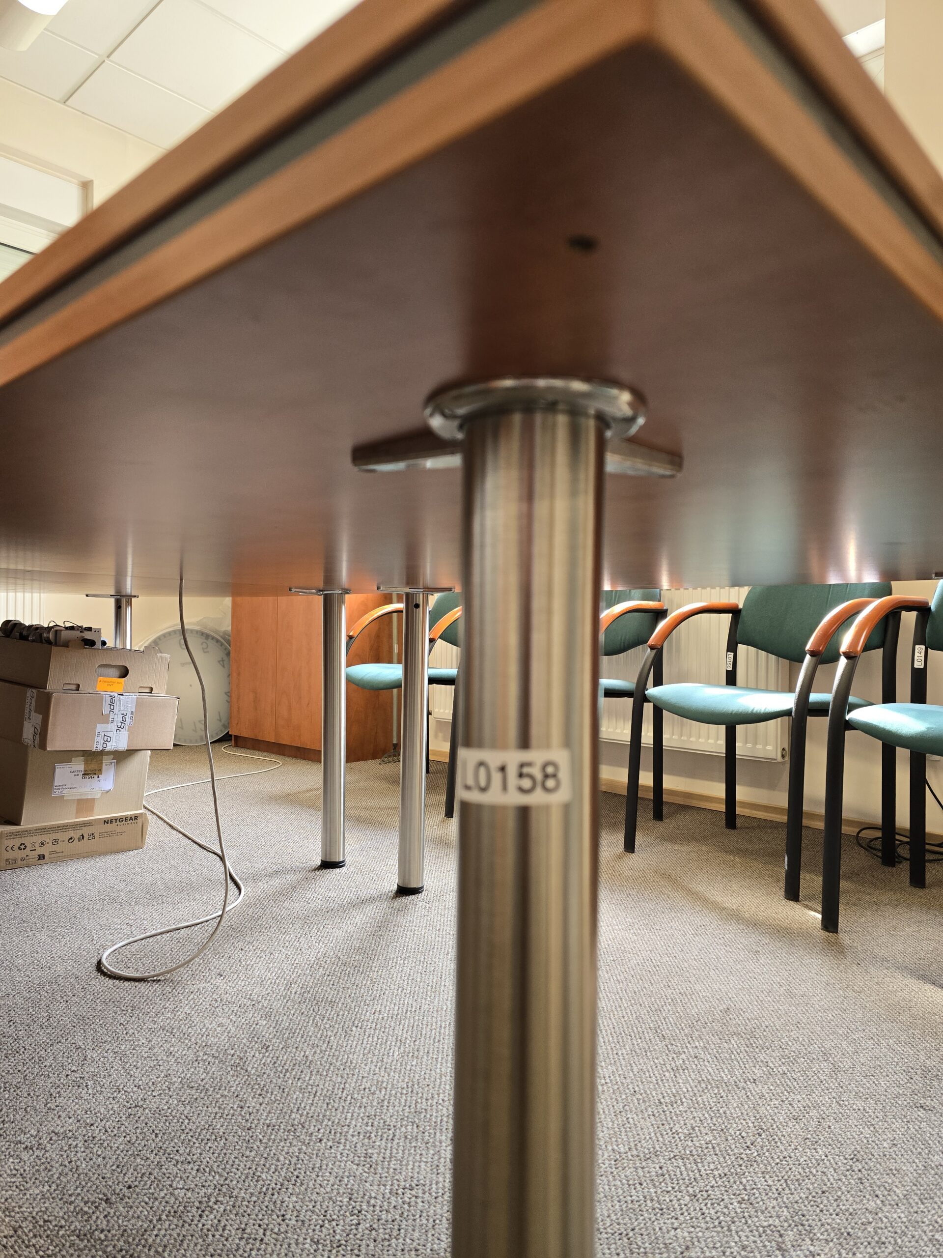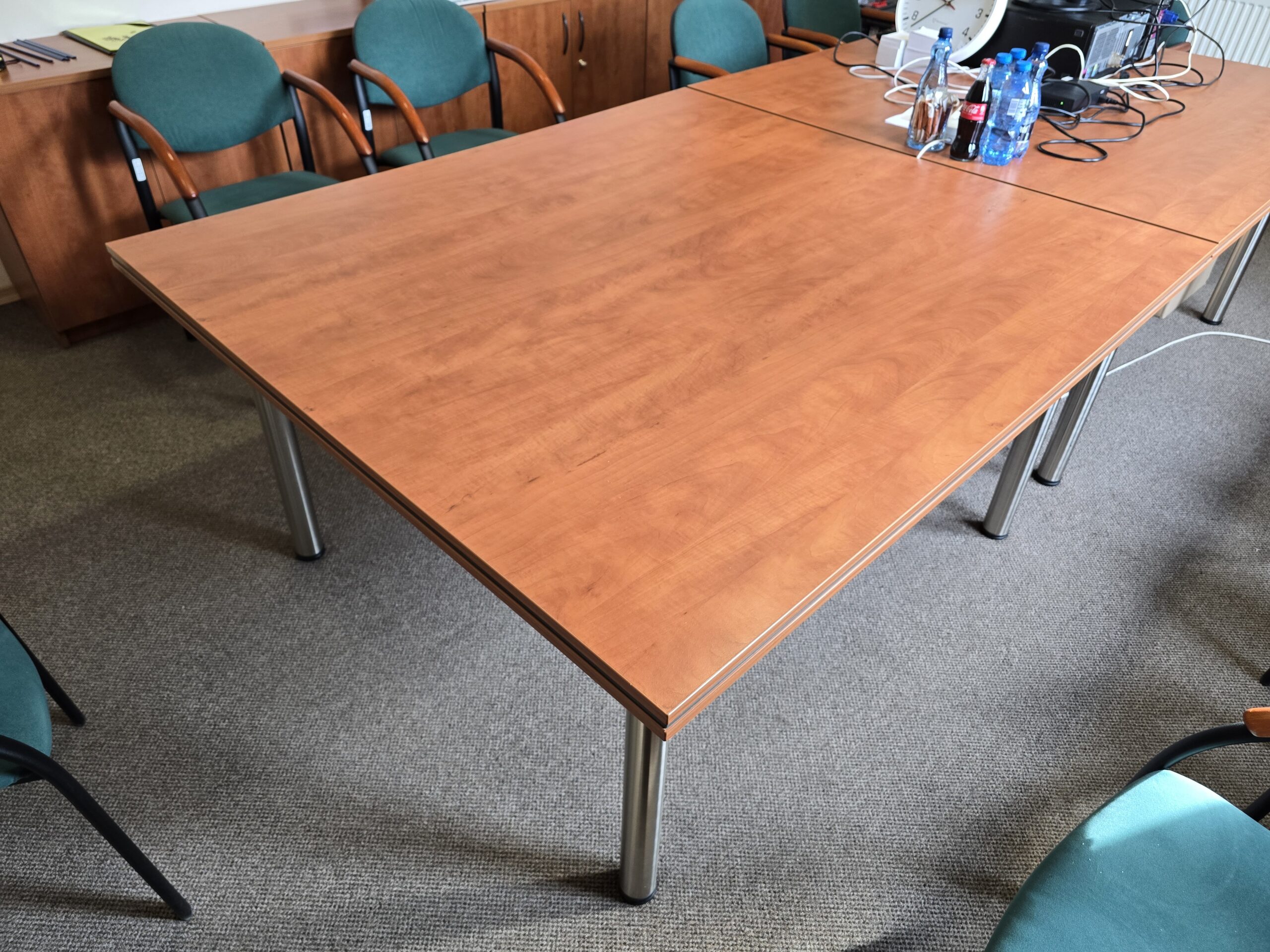 Stan | Stoły używane w sali konferencyjnej. Na blacie stołu L0159 małe, kilkumilimetrowe wyszczerbienie powierzchni (patrz zdjęcia). | |