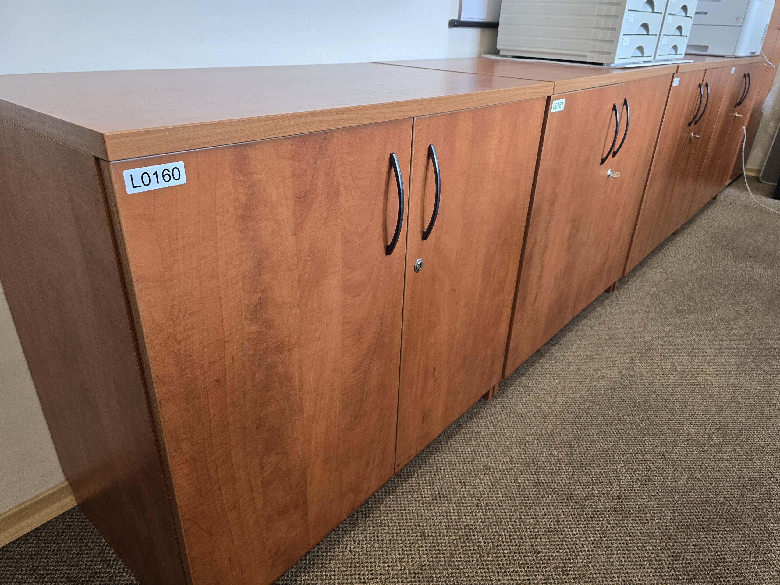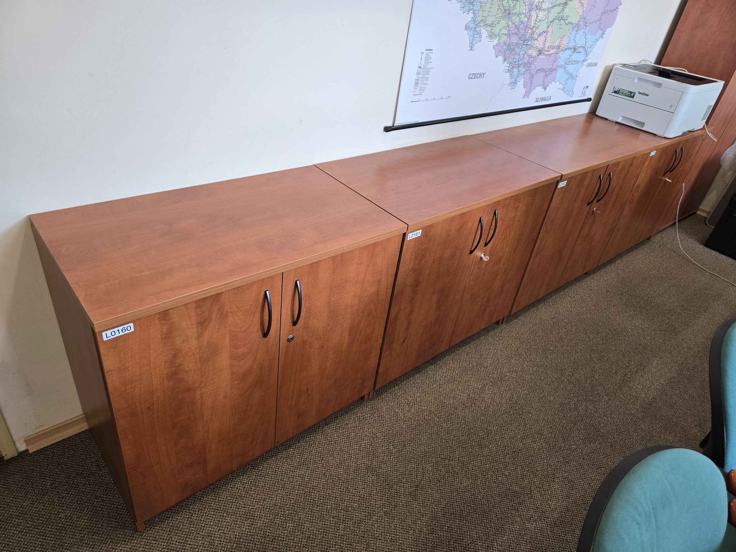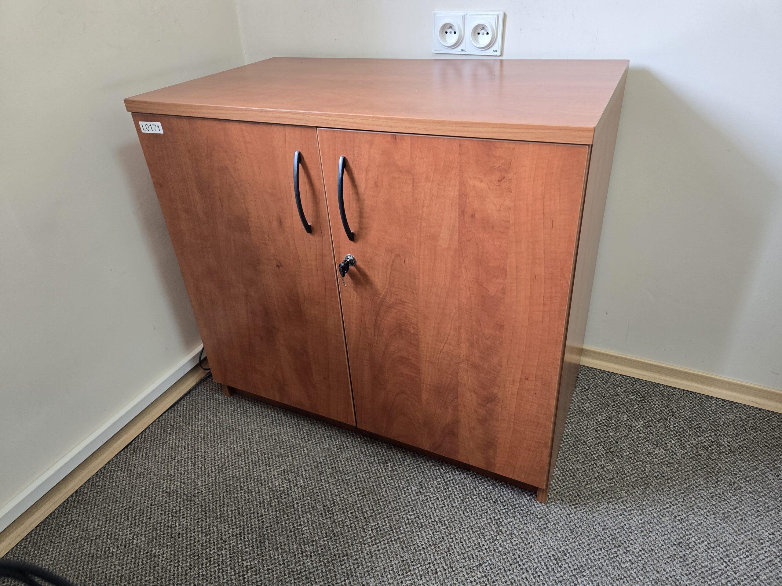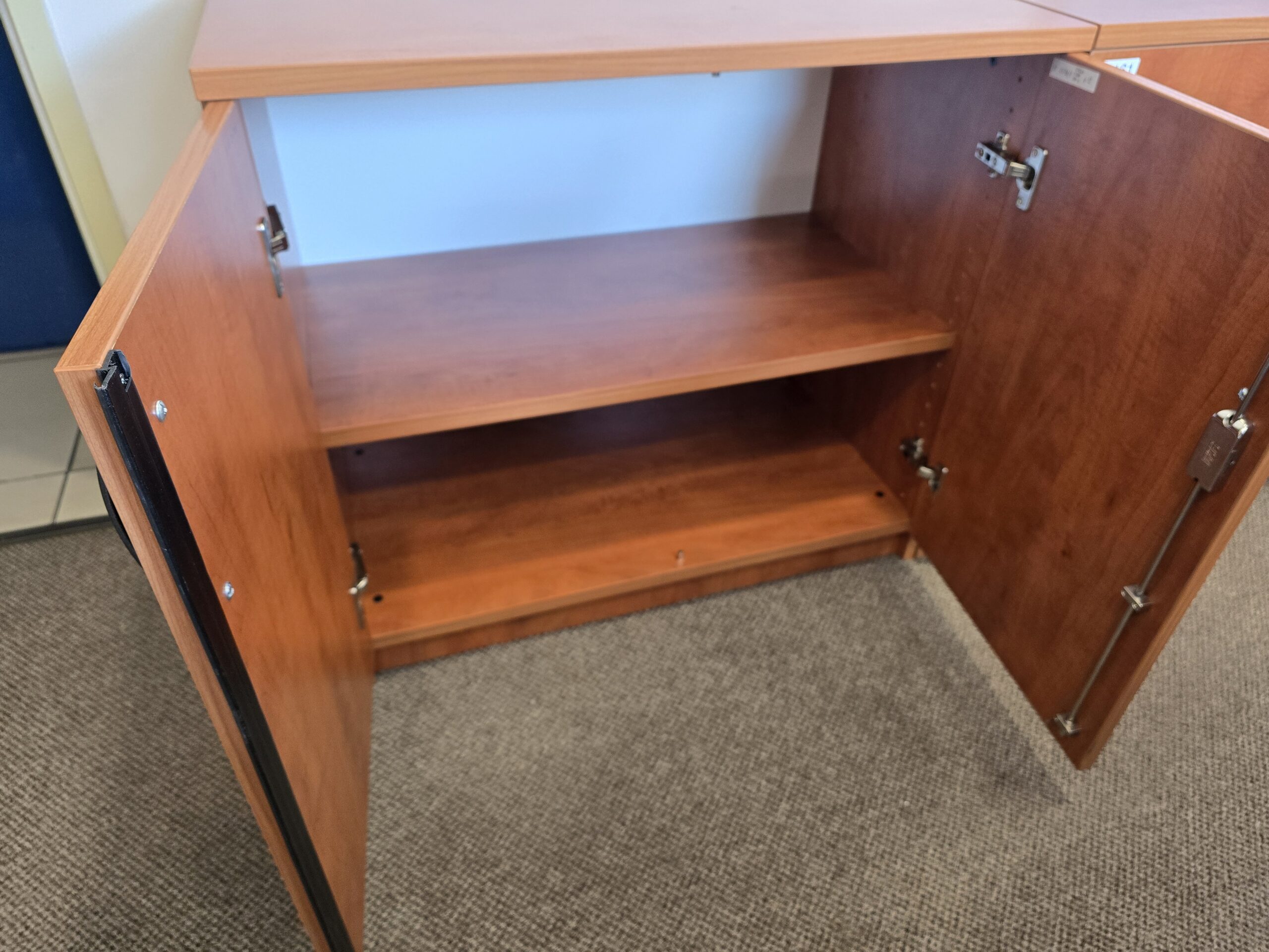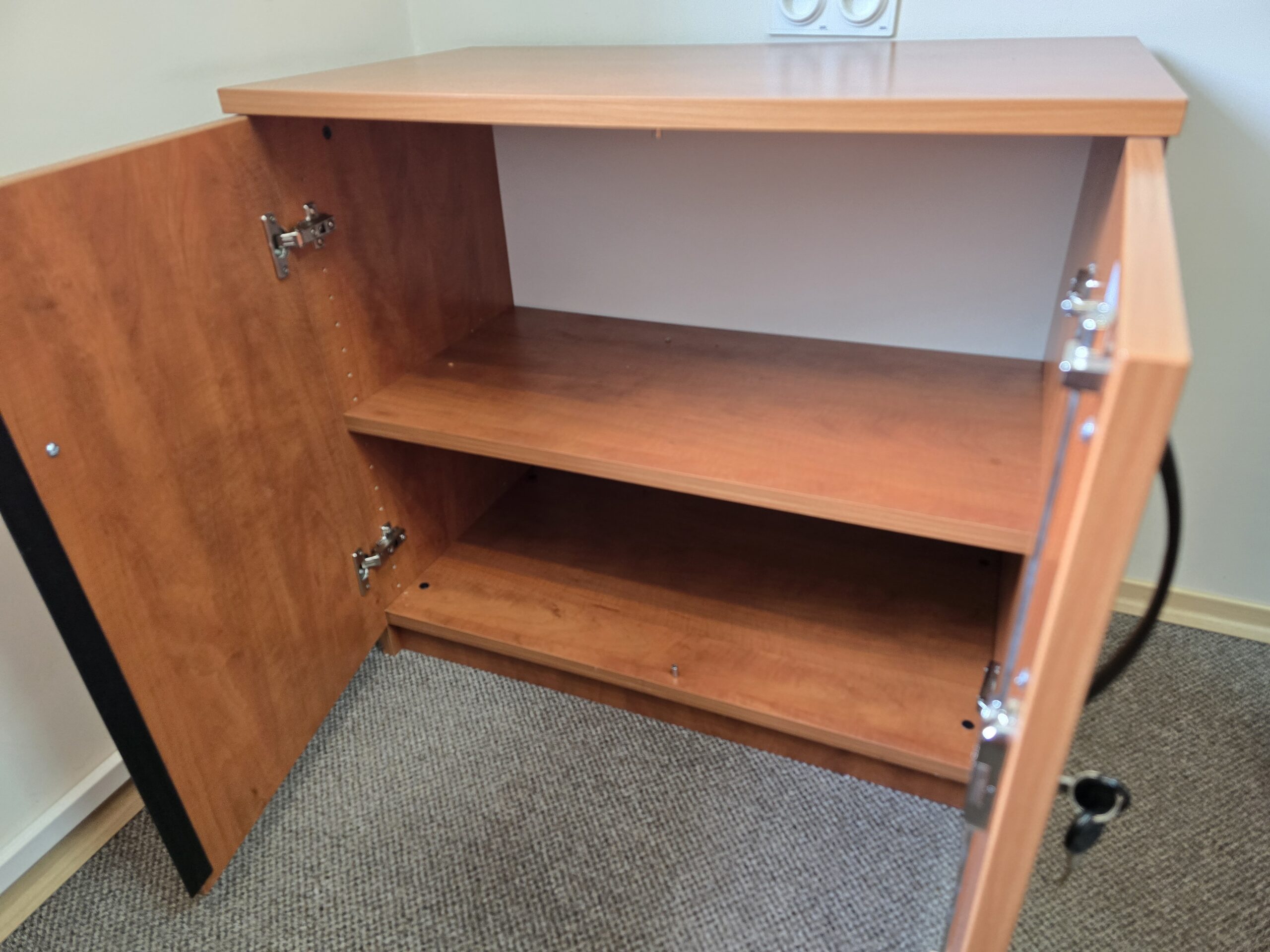 Niskie szafki biurowe. Każda z szafek posiada jedną półkę z możliwością regulacji wysokości, oraz zamek w drzwiach. Wymiary: 80 x 74 x 46 cm (S x W x G). | ||
