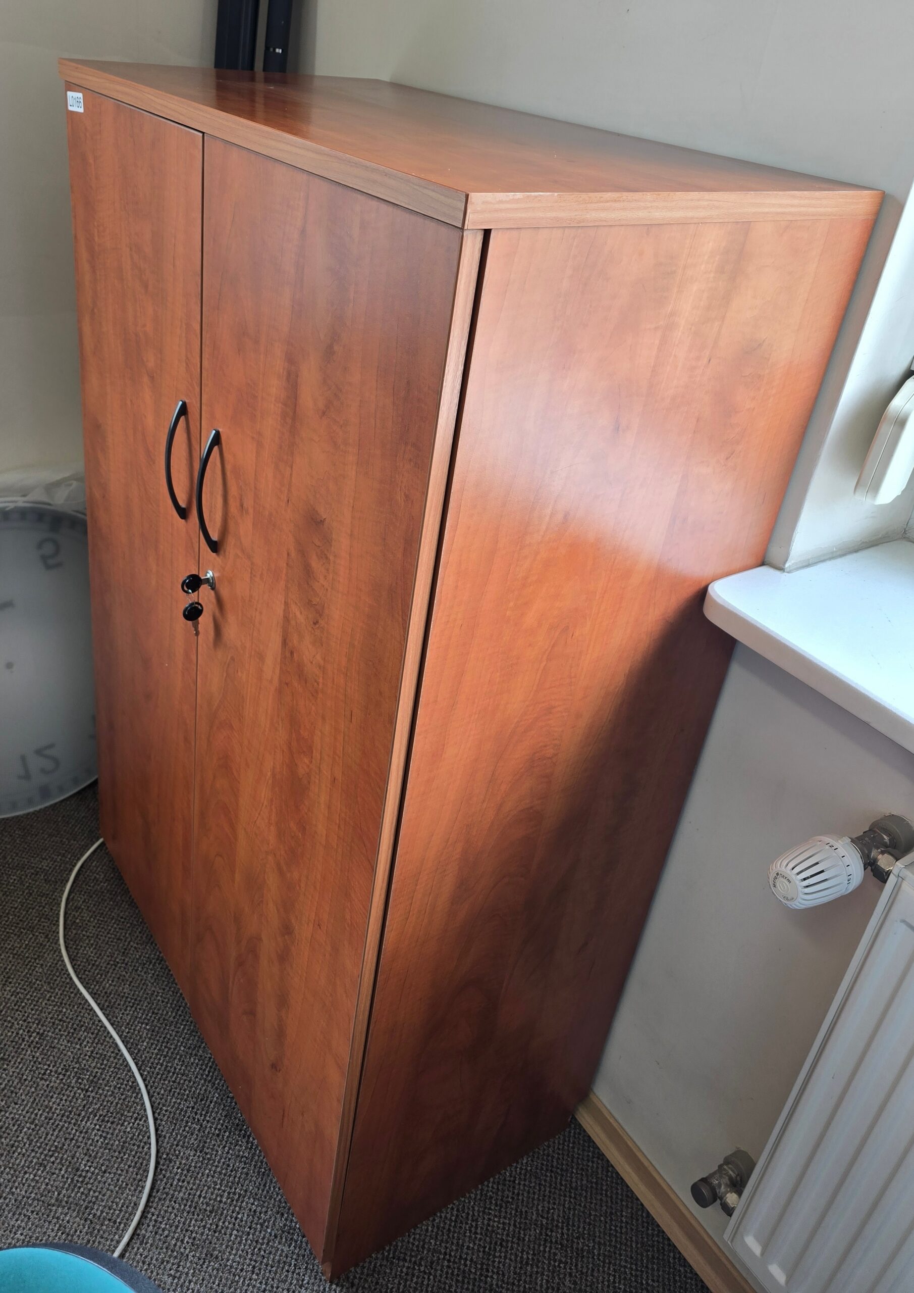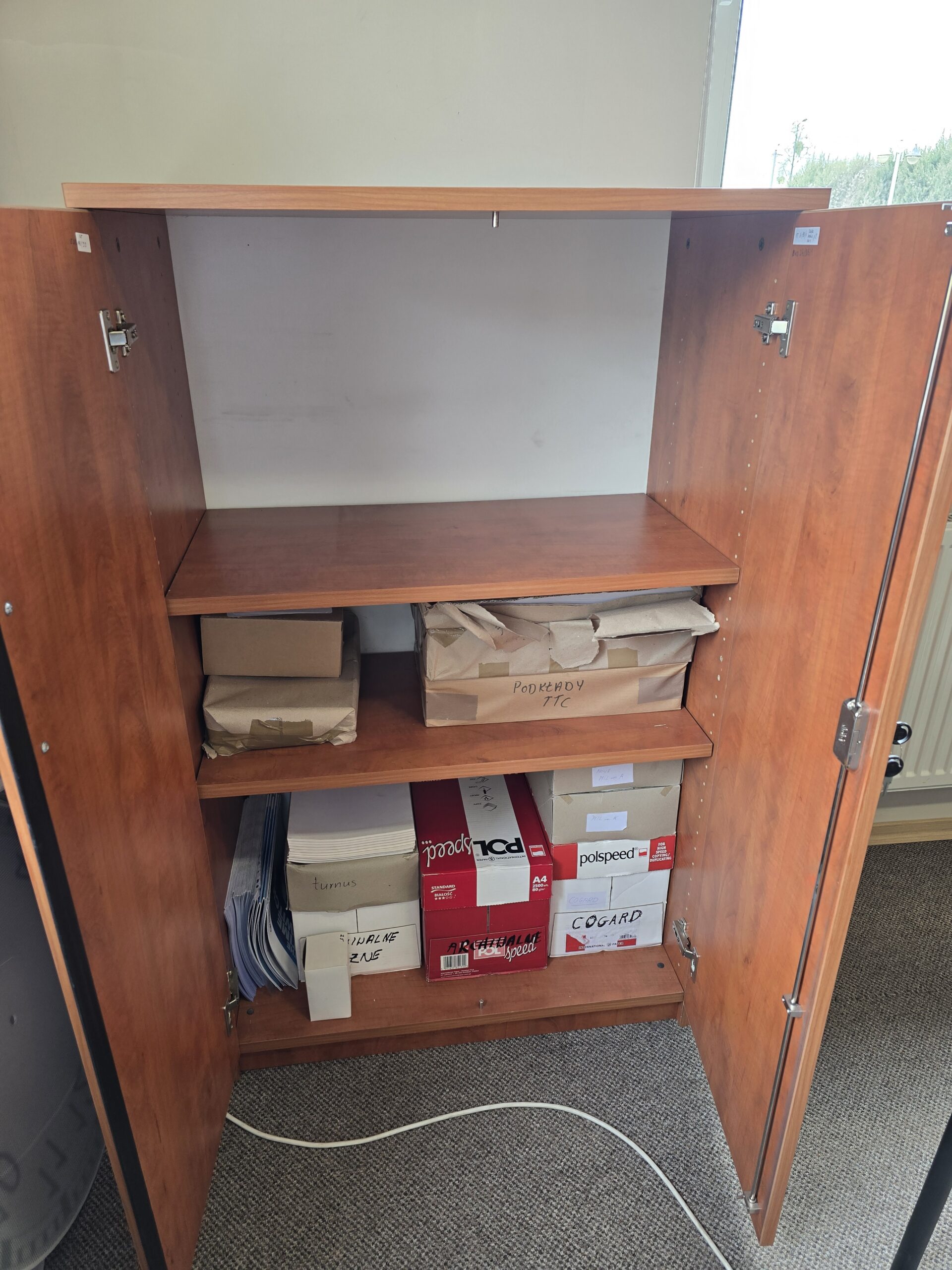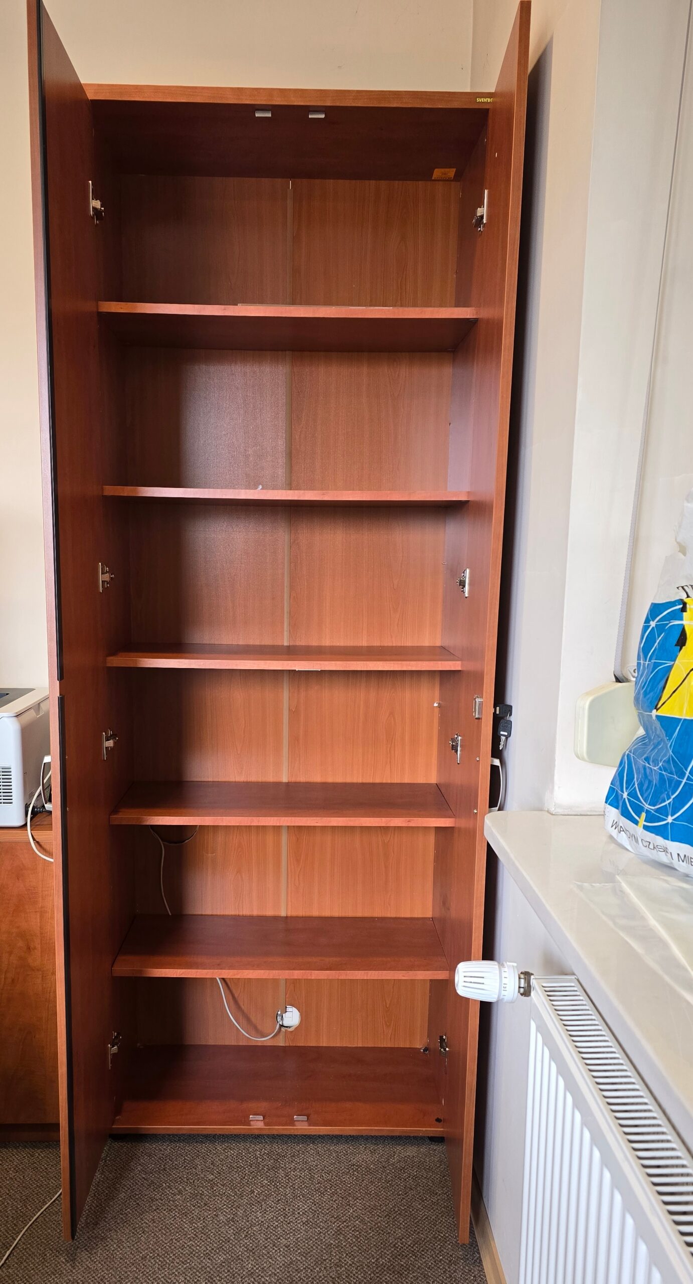Szafka biurowa o wymiarach 80 x 132,5 x 45 cm (SxWxG), z zamkiem. Wewnątrz półki z mozliwością regulacji wysokości. Przedmioty widoczne wewnątrz szafki nie należą do oferty. | ||