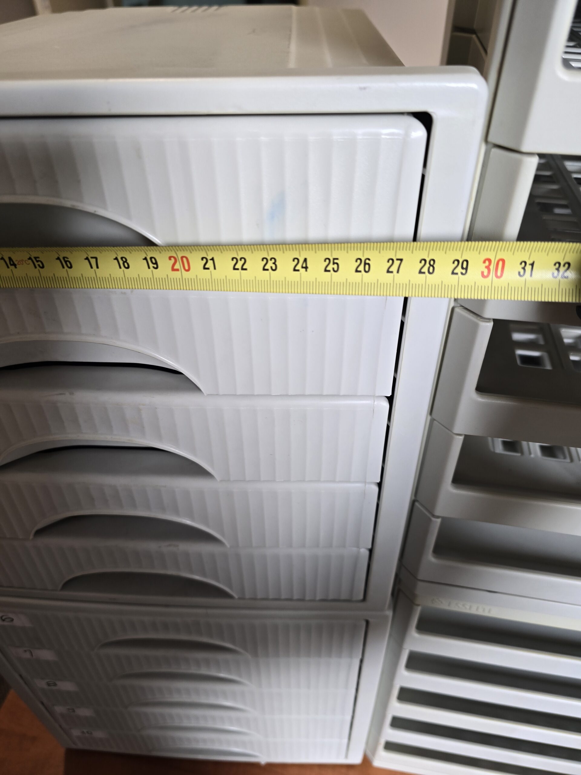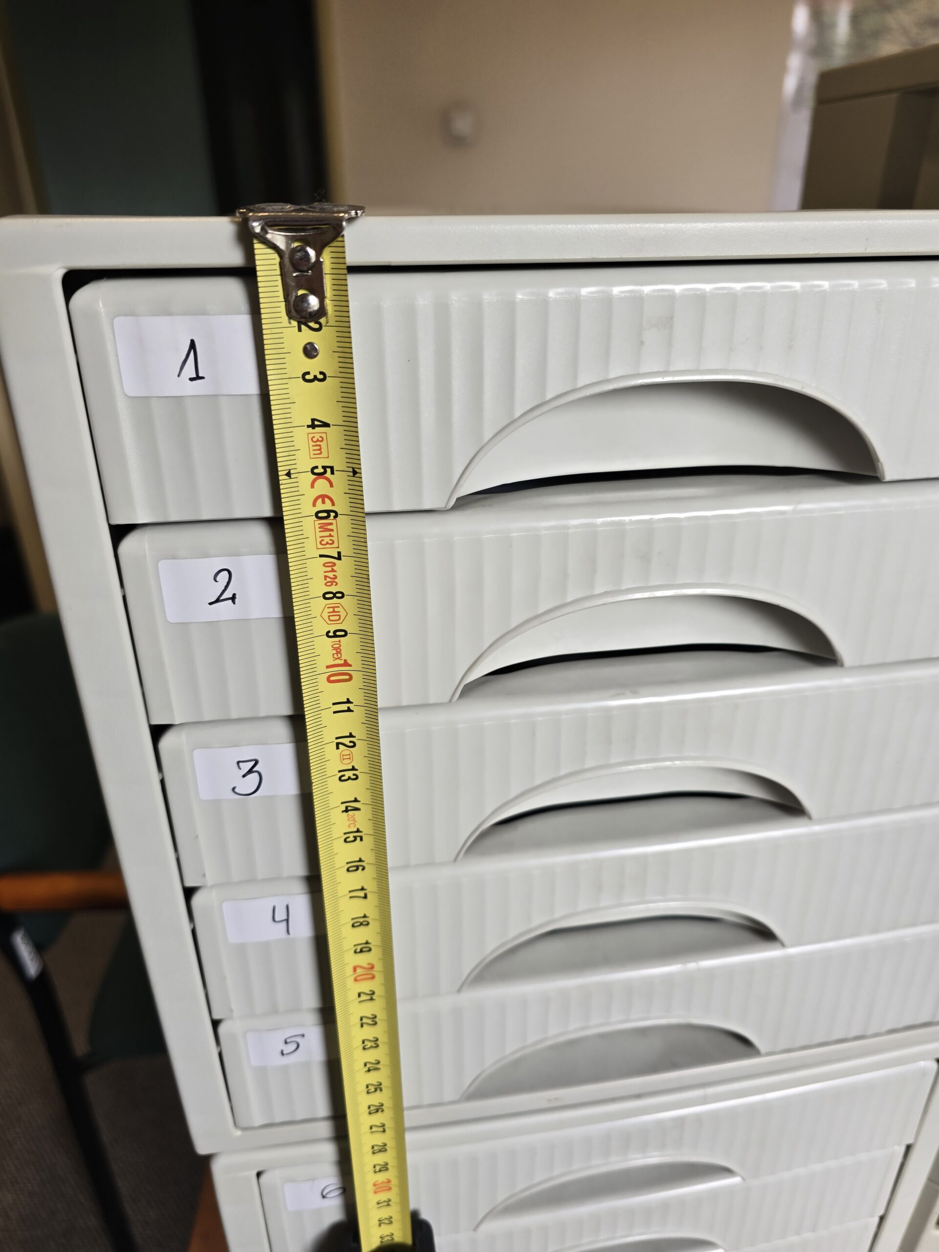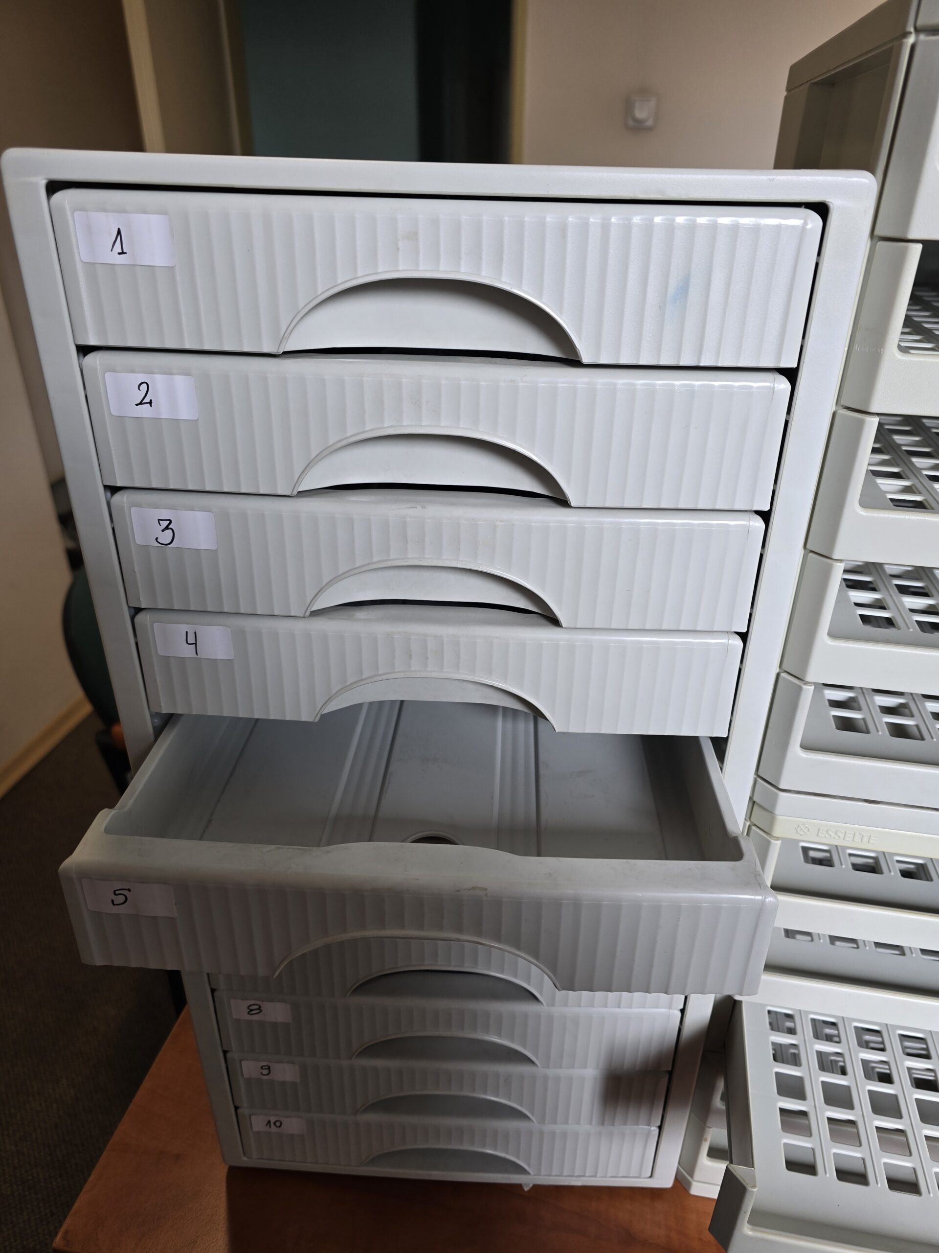 Zestaw szafek/szufladek na prospekty/dokumenty A4. Zestaw zawiera 5 szt. szafek Esselte, 2 szt. Herlitz, oraz 2 szt. innego producenta. Wymiary widoczne są na zdjęciach. | ||