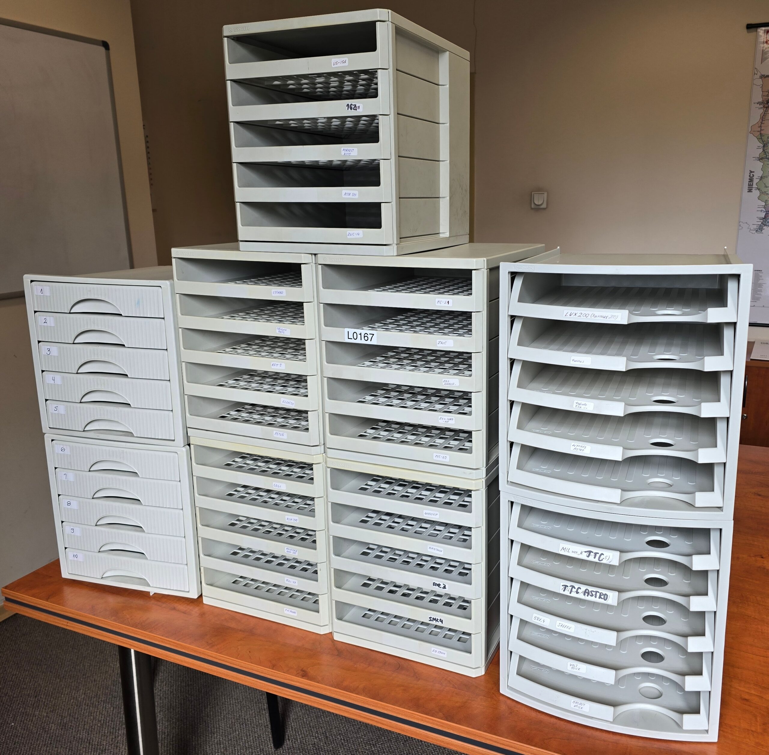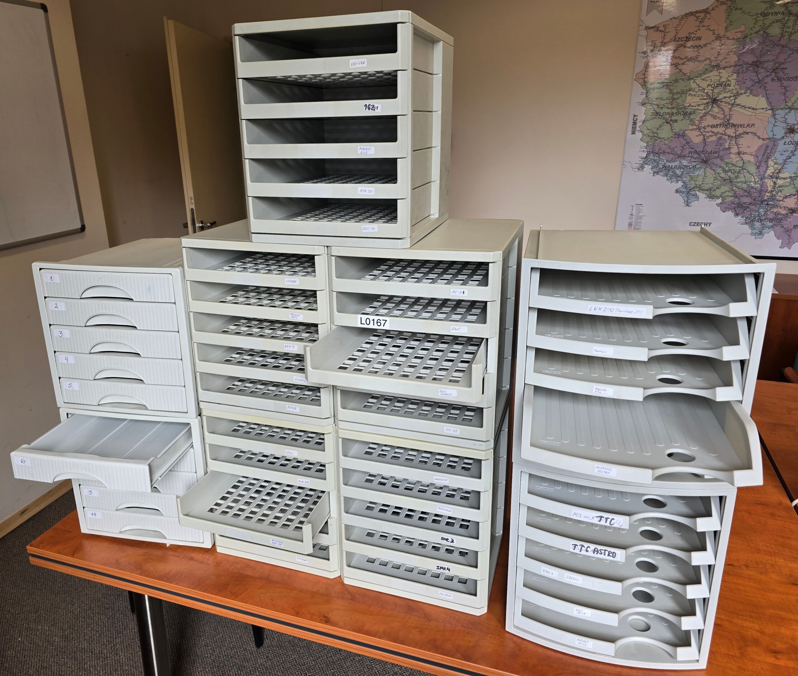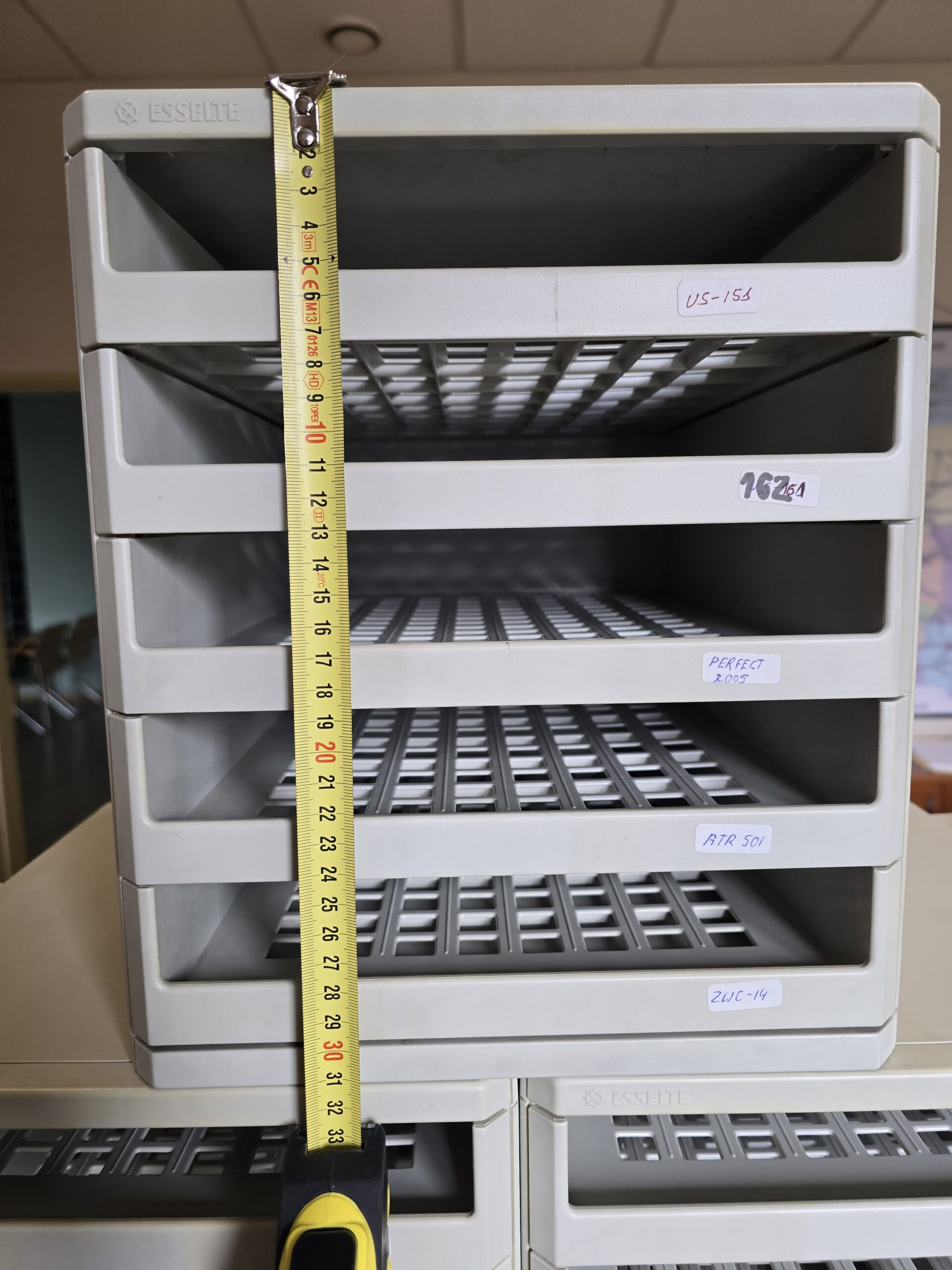 Zestaw szafek/szufladek na prospekty/dokumenty A4. Zestaw zawiera 5 szt. szafek Esselte, 2 szt. Herlitz, oraz 2 szt. innego producenta. Wymiary widoczne są na zdjęciach. | ||