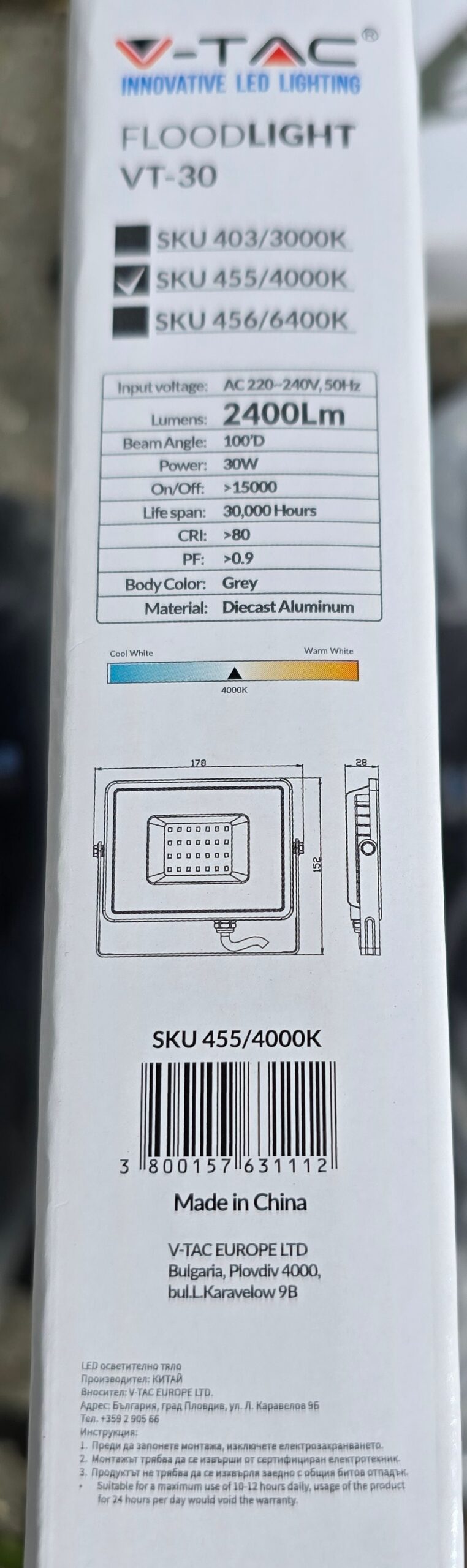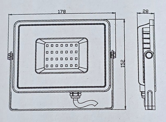 Mały oświetlacz LED o mocy 30W. Temperatura barwowa: 4000K. Zasilanie 230 VAC. | ||