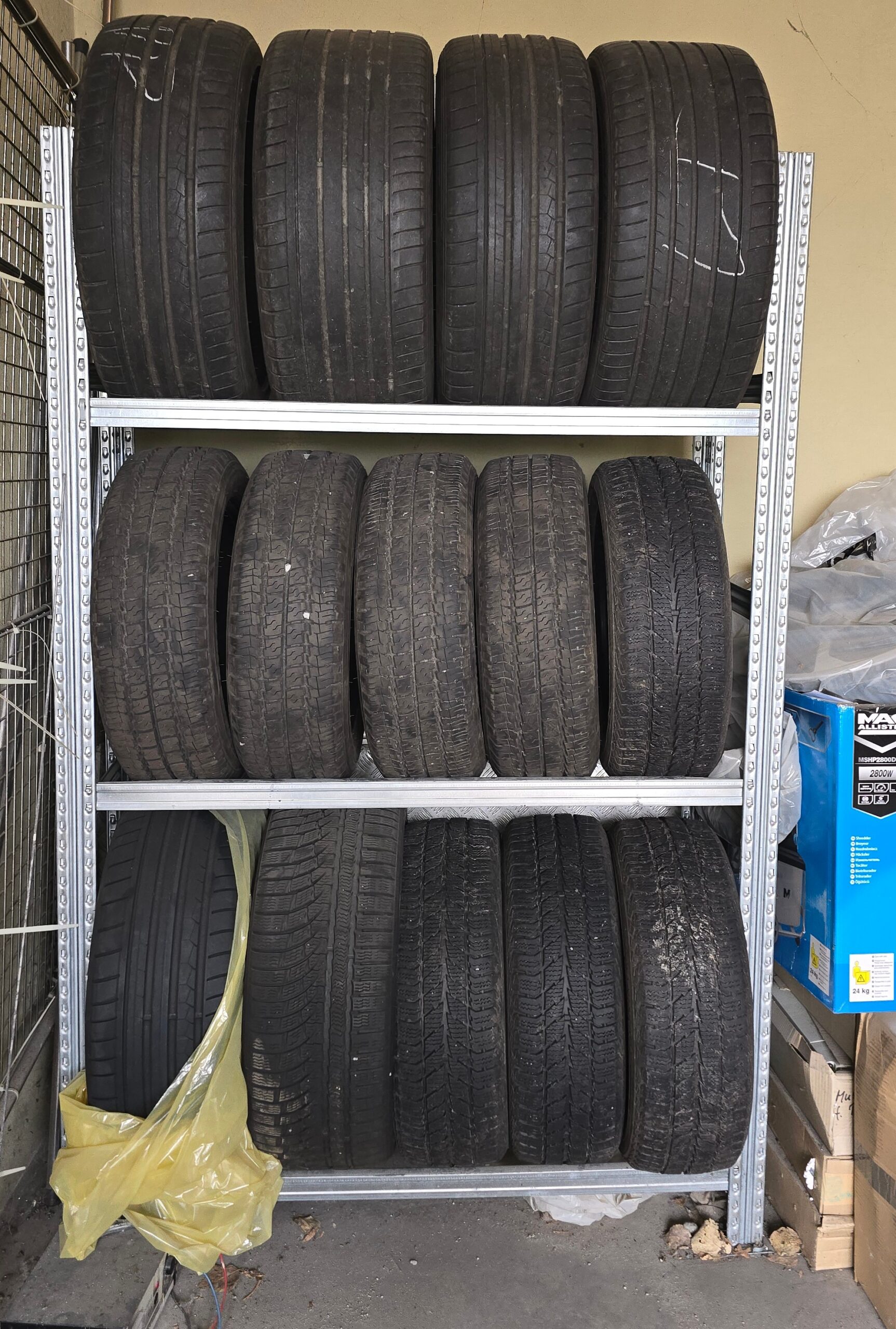 Regały do przechowywania opon samochodowych. W zależności od rozmiaru opon mozna na nich przechowywać 3-4 kompley opon. UWAGA: oferta dotyczy samych regałów. Opony, oraz inne sprzęty widoczne na zdjęciach nie wchodzą w zakres tej oferty. | ||